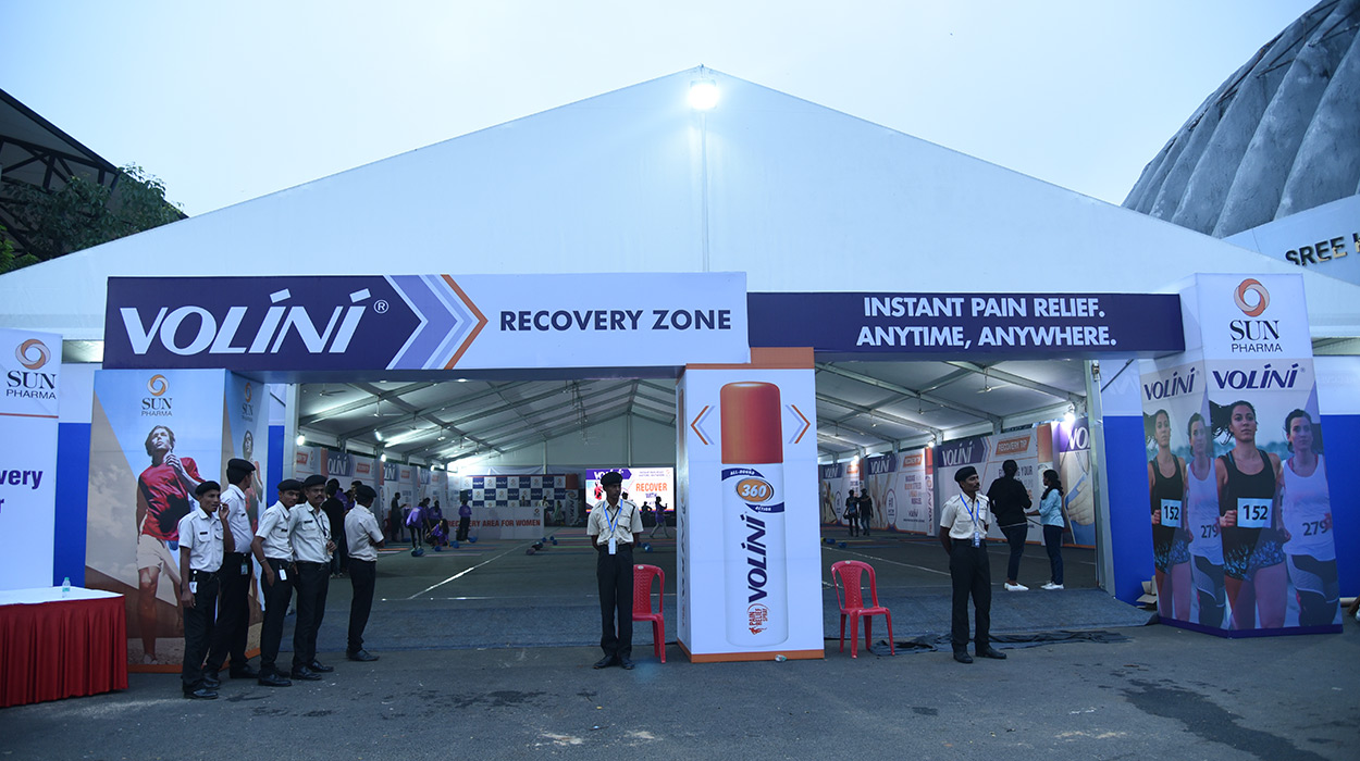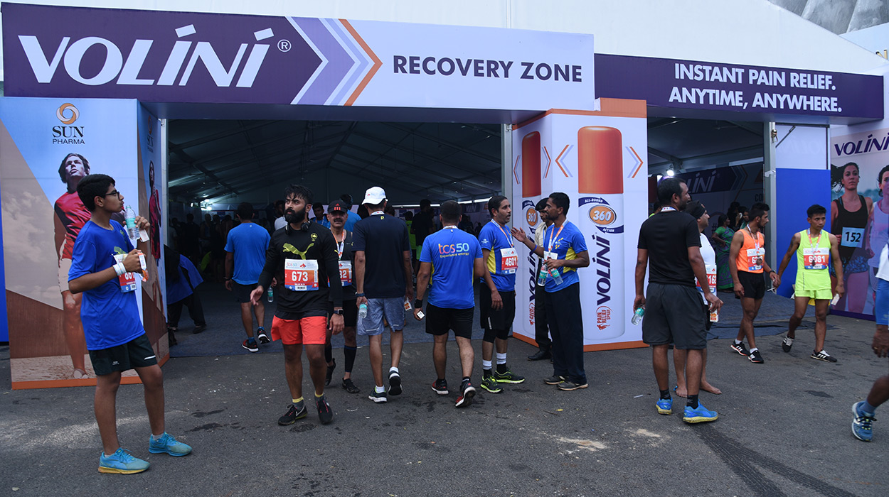 Volini Recovery zones are very popular amongst marathon runners in India. The 20,000 sq.ft recovery zones cater to a crowd ranging from 5000 to 10000+ and at any given point in time there are minimum 500 runners to attend to.